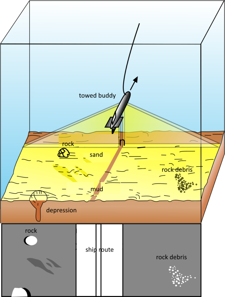 A side-scan sonar is best suited for underwater searches, as it detects all objects that stand out from or differ from the seabed, regardless of the type of material.